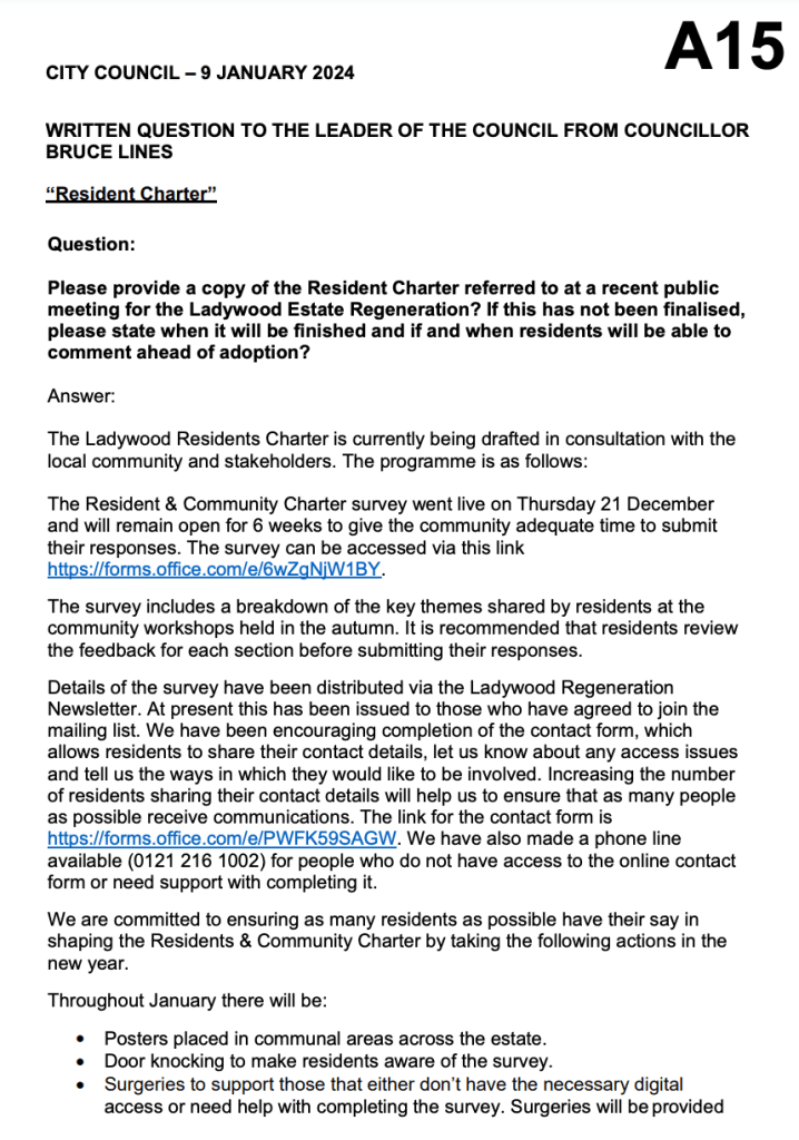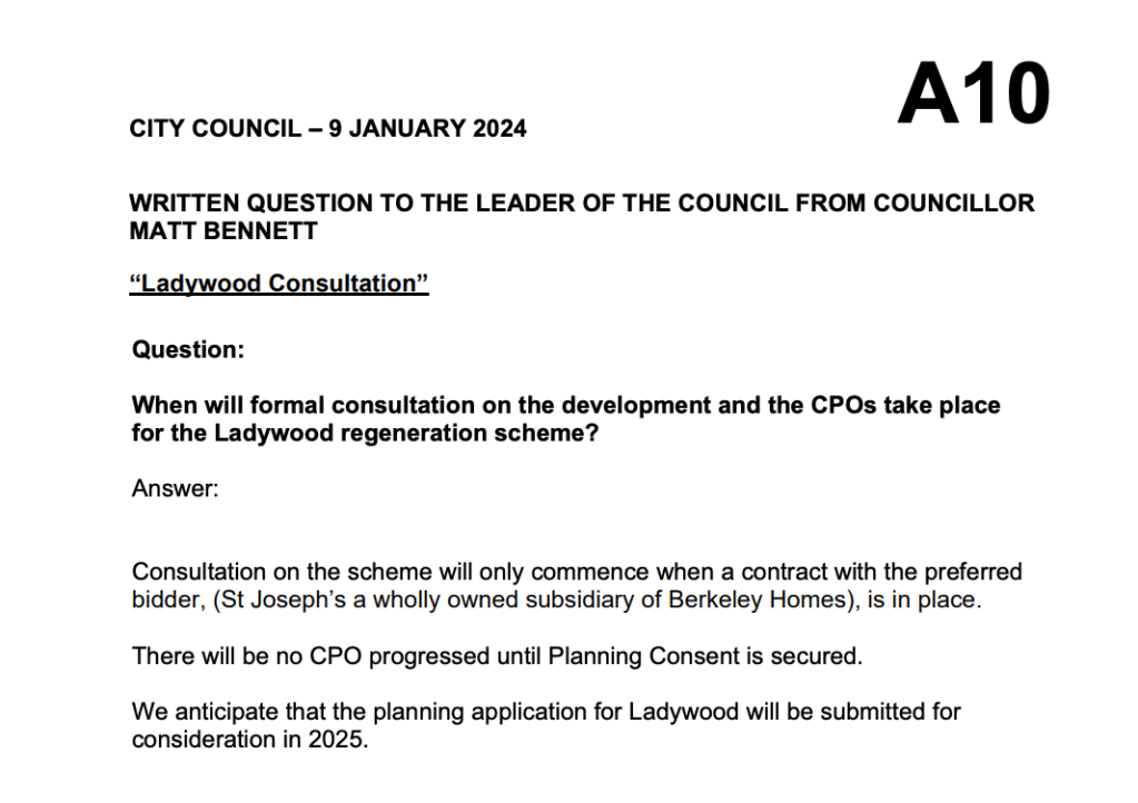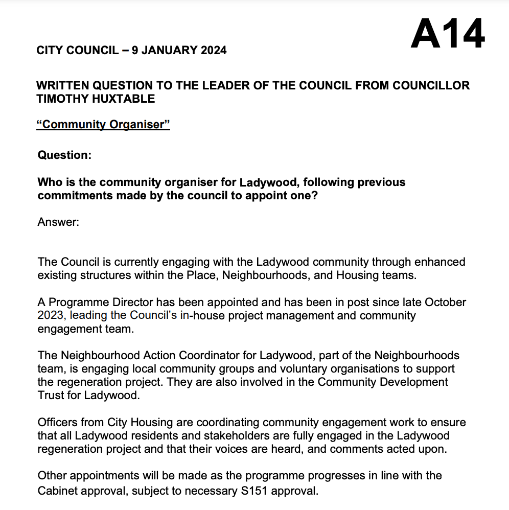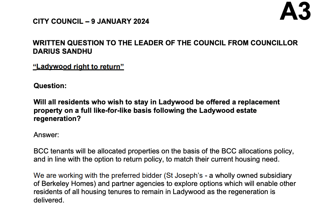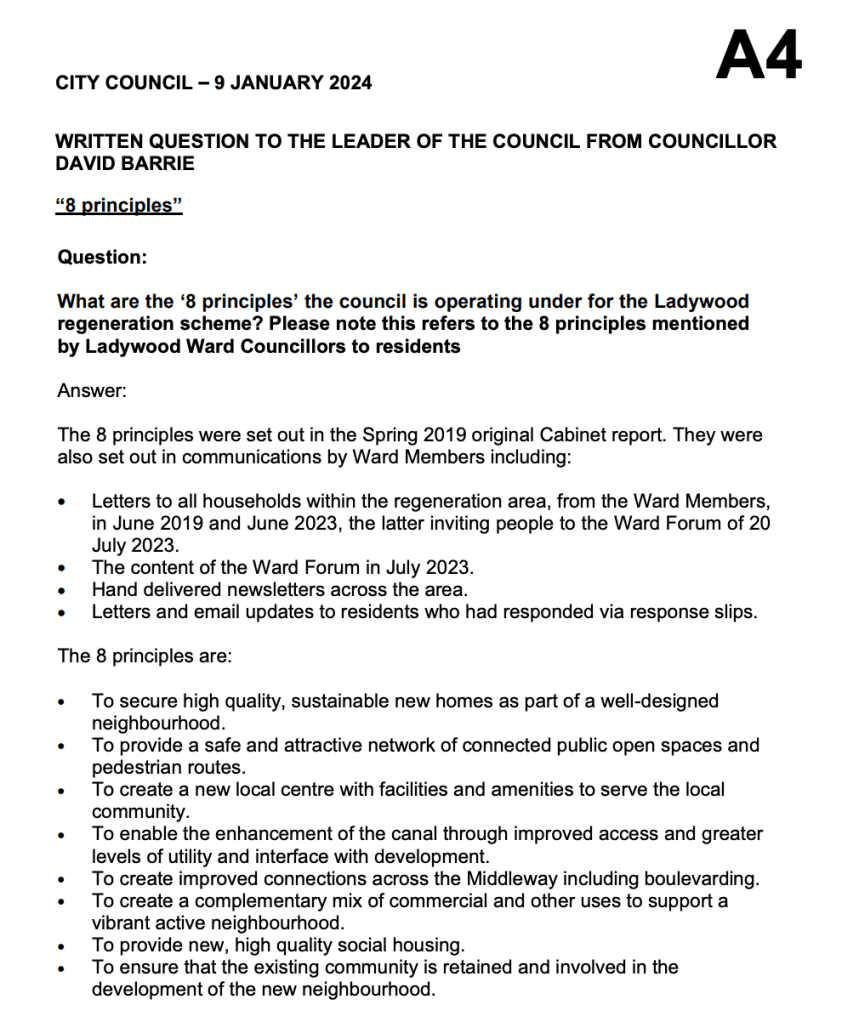 The minutes from the council meeting on 9 January 2024 have now arrived online. Thank you to all of the Councillors asking questions on our behalf! We have had some answers on right to return, masterplan, consultation, community organisers, the residents charter, project resources, and the eight principles that have been missing. What do you think of the answers? Leave a message in the chat below.